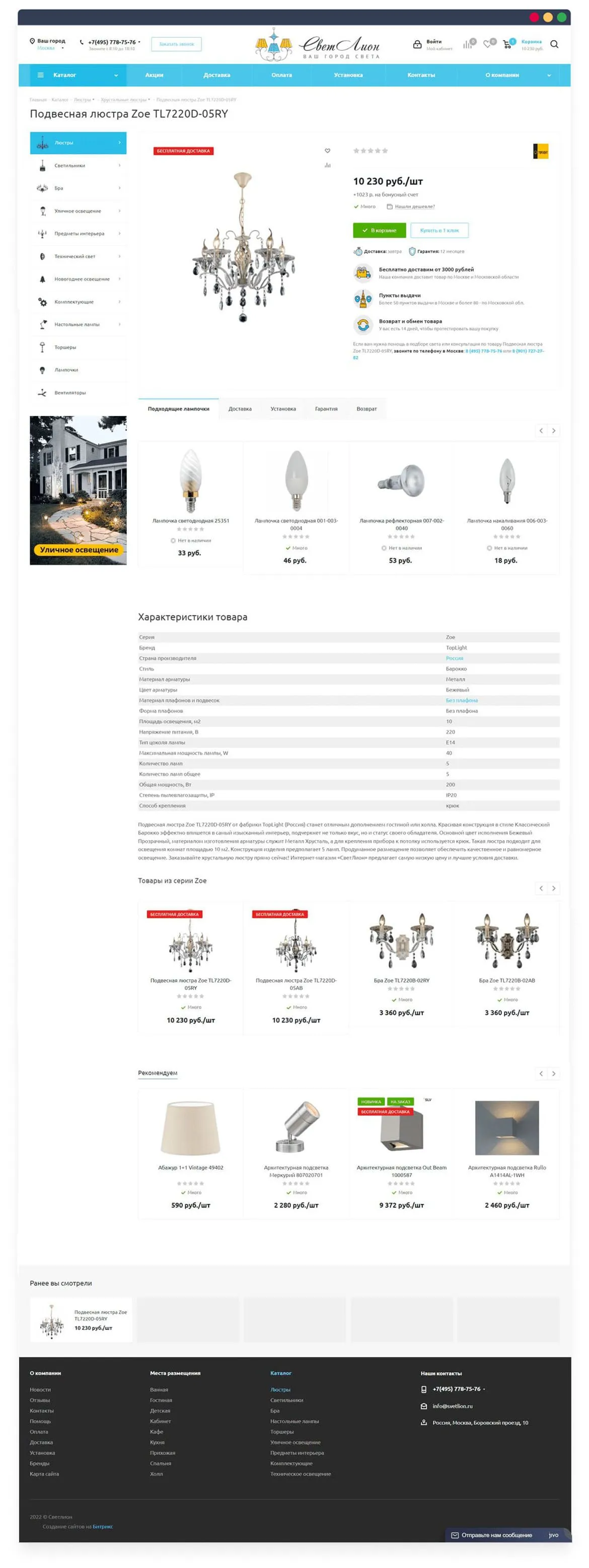 Расширили функционал карточек товара, добавили возможность автоматического подбора лампочек по цоколю светильника